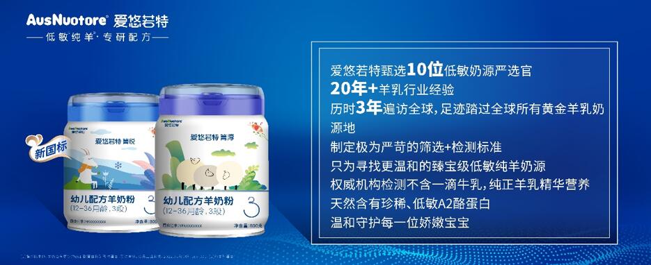 中国好声音,中国好奶粉!爱悠若特新国标在产品理念和配方上创新打造 “低敏纯羊”,希望通过低敏、亲和、自然的专业营养为新生代宝宝更温和的喂养解决方案。