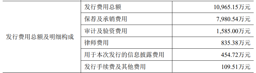 浩辰软件本次发行费用总额为10,965.15万元,其中保荐及承销费用7,980.54万元。