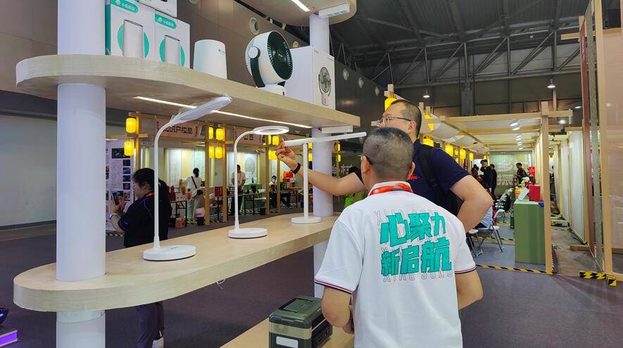 观众现场体验小崧均匀光护眼台灯