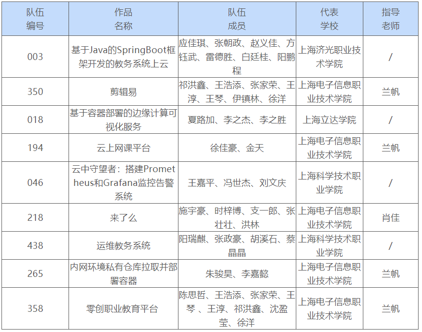 经过线上评选,第二届“天翼云杯”上海市大学生云计算应用大赛赛道决赛名单已产生。现公示如下: