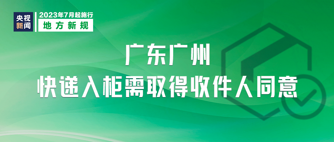 《广州市快递条例》将于7月1日起实施,《条例》规定快递企业使用智能快件箱、快递服务站等方式投递快件的,应当事先征得收件人的同意,并告知快件投放的地址、免费保管期限以及超时保管收费标准等信息。