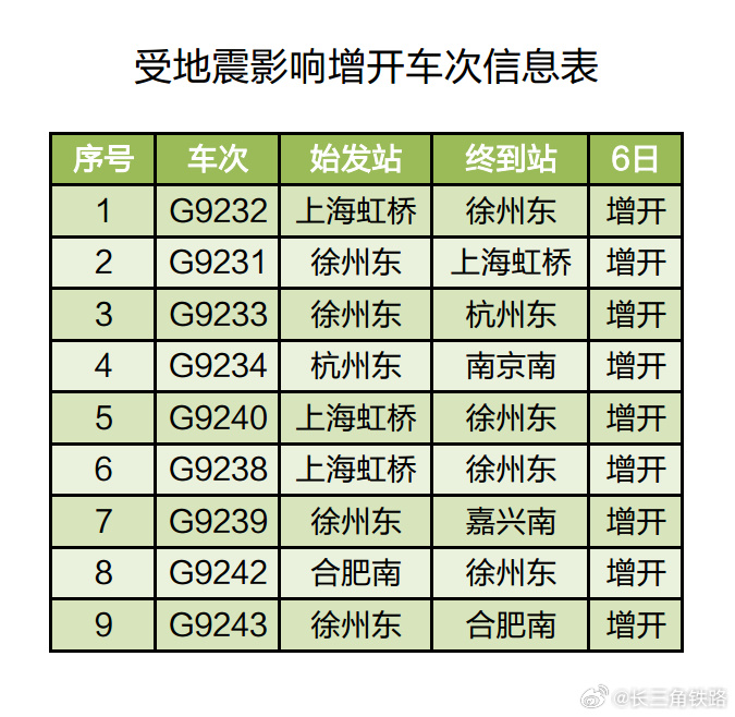 后续,铁路部门将密切关注地震影响区段高铁恢复运行和旅客出行需要等情况,适时采取停运、加开、恢复开行等措施,动态调整列车开行方案,确保旅客安全出行需要。具体列车开行信息请关注车站公告或致电铁路12306客服热线查询,以便妥善安排行程。